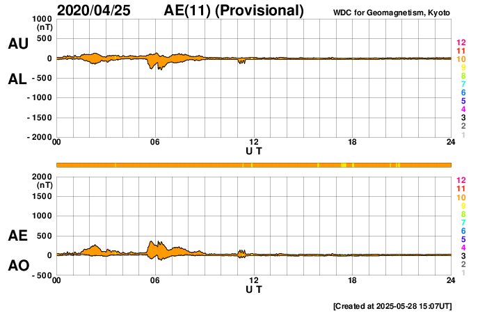Acknowledgments: We thank AE stations (Abisko [SGU, Sweden], Dixon Island, Cape Chelyuskin, Tixie Bay, Pebek [AARI, Russia], Barrow, College [USGS, USA], Yellowknife, Fort Churchill, Sanikiluaq (Poste-de-la-Baleine) [GSC, Canada], Narsarsuaq [DTU Space, Denmark], and Leirvogur [U. Iceland, Iceland]) as well as the RapidMAG team (NiCT, JHU/APL, UoA, AARI, and IDG) for their cooperations and efforts to operate these stations and to supply data with us for the provisional AE index.