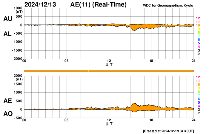 We thank AE stations (Abisko [SGU, Sweden], Dixon Island, Cape Chelyuskin, Tixie Bay, Pebek, Amderma [AARI, Russia], Barrow, College [USGS, USA], Yellowknife, Fort Churchill, Sanikiluaq (Poste-de-la-Baleine) [GSC, Canada], Narsarsuaq [DTU Space, Denmark], and Leirvogur [U. Iceland, Iceland]) as well as the RapidMAG team (NiCT, JHU/APL, UoA, AARI, IDG) for their cooperations and efforts to operate these stations and to supply data with us for the real-time AE index.