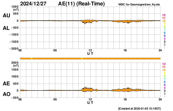 We thank AE stations (Abisko [SGU, Sweden], Dixon Island, Cape Chelyuskin, Tixie Bay, Pebek, Amderma [AARI, Russia], Barrow, College [USGS, USA], Yellowknife, Fort Churchill, Sanikiluaq (Poste-de-la-Baleine) [GSC, Canada], Narsarsuaq [DTU Space, Denmark], and Leirvogur [U. Iceland, Iceland]) as well as the RapidMAG team (NiCT, JHU/APL, UoA, AARI, IDG) for their cooperations and efforts to operate these stations and to supply data with us for the real-time AE index.