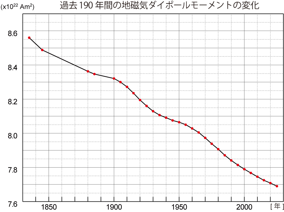 過去190年間の間の地磁気ダイポールモーメントの変化